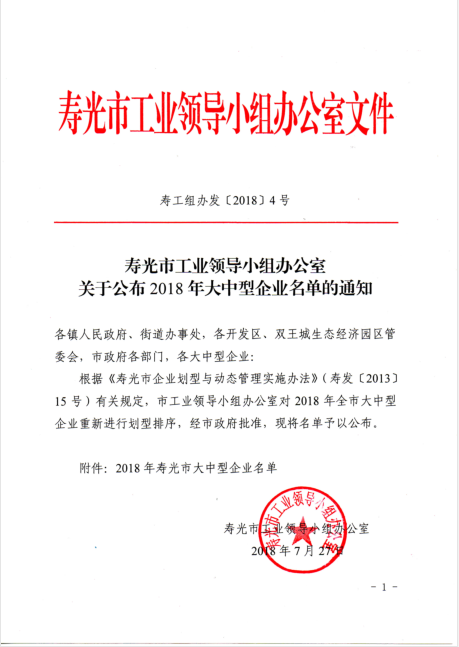 2018年壽光市大中型企業(yè)名單公布