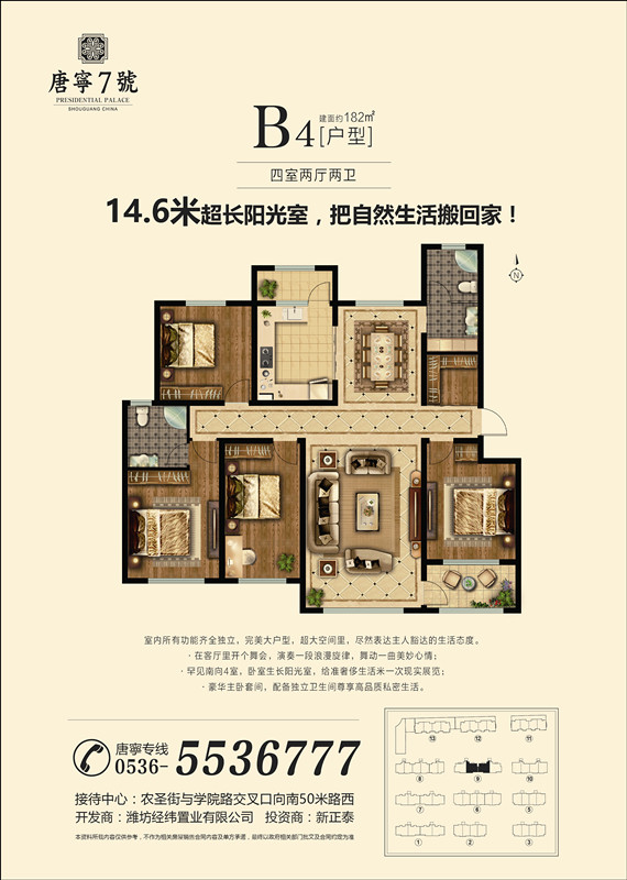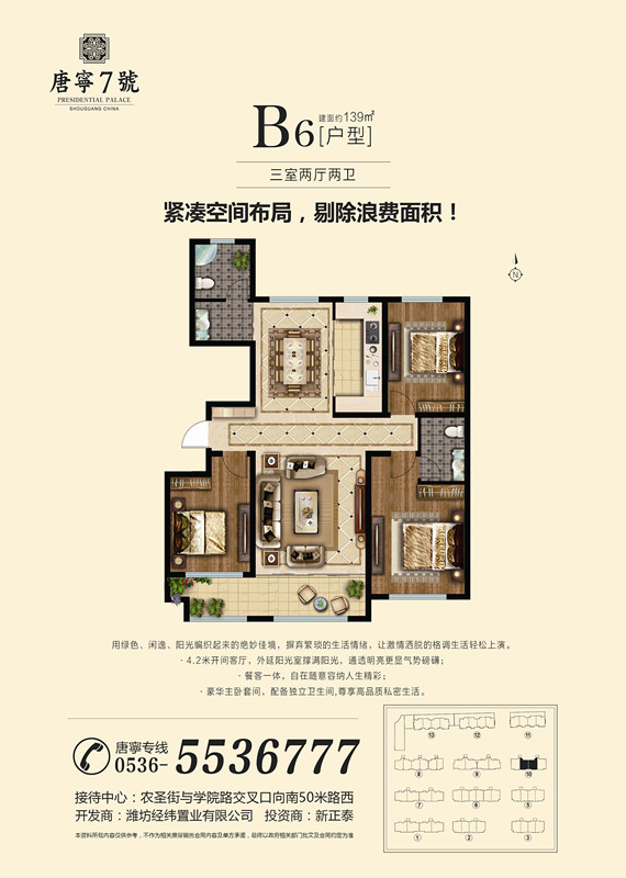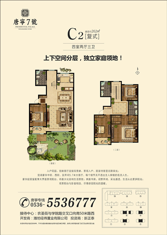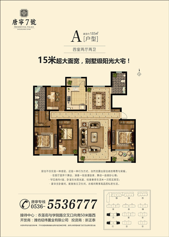 我們的戶型有105——190㎡景區(qū)洋房,210-360㎡的復(fù)式疊拼。我們項(xiàng)目以“ 健康、環(huán)保、人文居住 ”為主題,項(xiàng)目無論是產(chǎn)品定位,還是在規(guī)劃設(shè)計方面,都將打造成**的居住環(huán)境,產(chǎn)品采用通風(fēng)采光效果較好的板式建筑,每一個戶型都是采取設(shè)計師的精雕細(xì)琢。所有產(chǎn)品均是在采取客戶的建議和意見開發(fā)基礎(chǔ)上,結(jié)合壽光本地居住習(xí)慣設(shè)計而成,所有房源均南北通透,方正實(shí)用,保證居住舒適性。