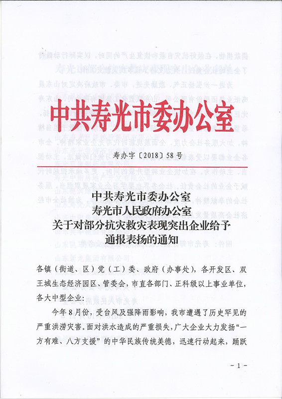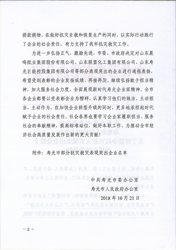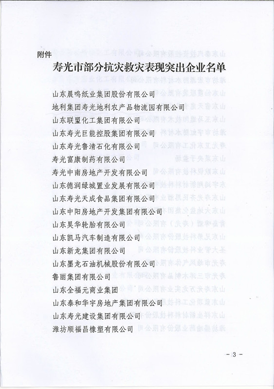 壽光市抗災(zāi)救災(zāi)表現(xiàn)突出企業(yè)名單