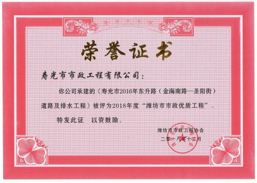 濰坊市市政優(yōu)質(zhì)工程-東升路