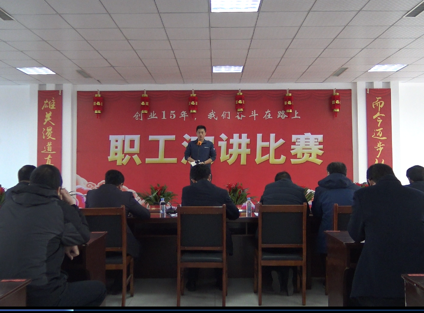 2019年2月28日,“創(chuàng)業(yè)15年,我們奮斗在路上”職工演講比賽在公司五樓會(huì)議室舉行。公司董事長(zhǎng)、總經(jīng)理王曉軍和班子成員及職工代表共計(jì)100余人現(xiàn)場(chǎng)觀看比賽。