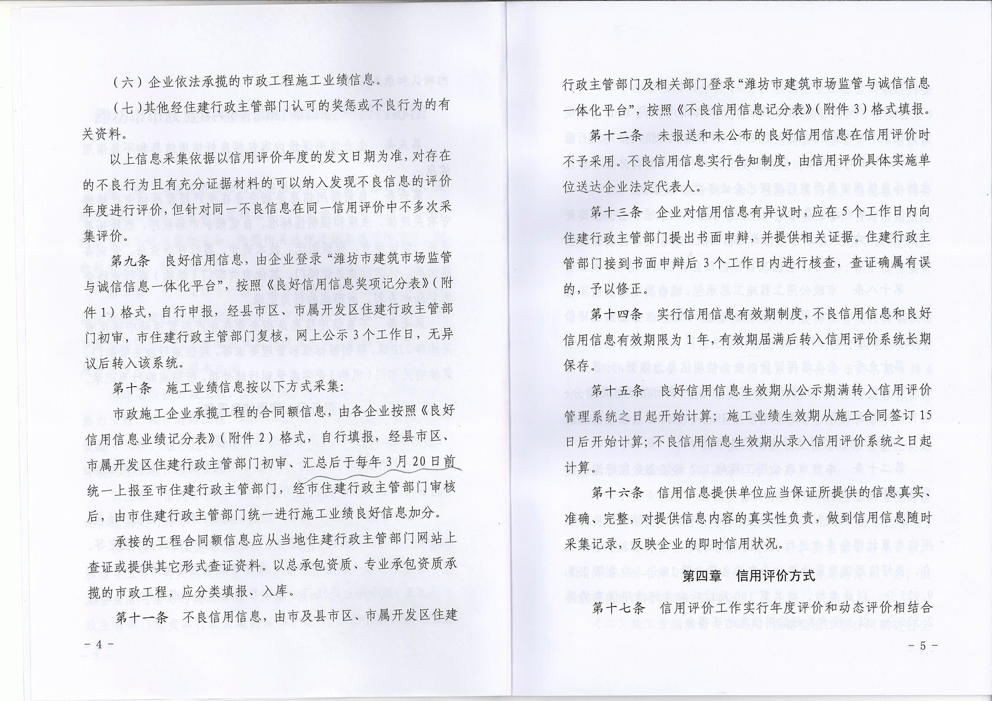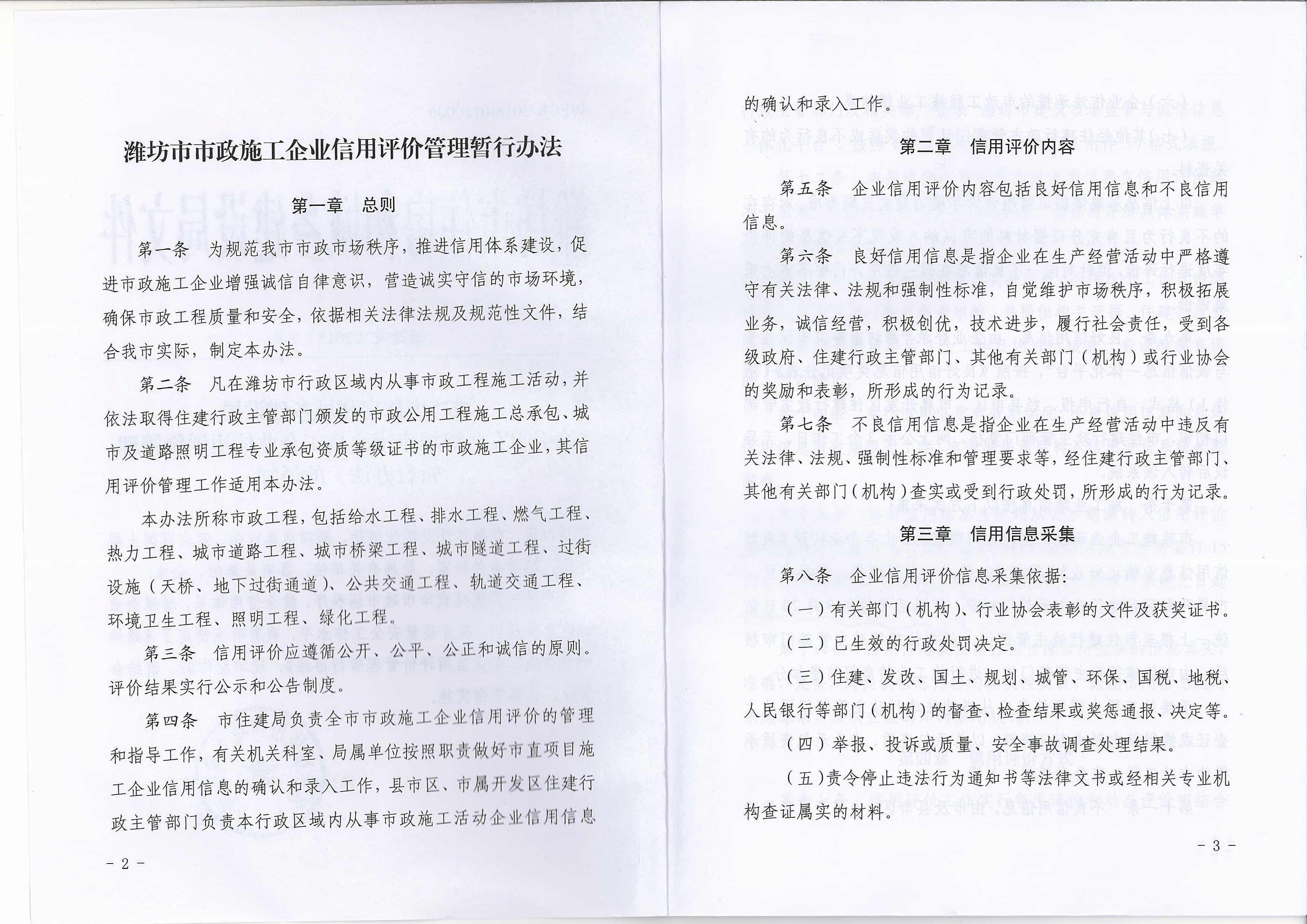 《濰坊市市政施工企業(yè)信用評價管理暫行辦法》下發(fā)